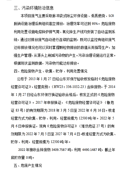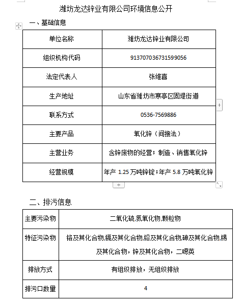 潍坊龙达锌业有限公司污染防治信息公开20230115